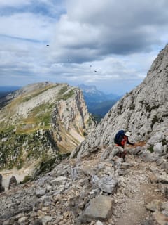 Génial! J'ai réalisé qu'une partie du parcours (départ jusqu'au Grand Veymont) . J'ai fait l'ascension du Grand Veymont du côté du "Pas de la Ville", très raide et périeu. Au début pas mal de forêt et de prairie et surtout beaucoup de mouches! Mais une fois les 1600m d'altitude, des animaux de partout, mouton, bouquetins, aigle, etc. Mon ami et moi avons eu la chance de voir un loup un beau matin. Attention aux chien de bergers, bien s'éloigner des élevages. Prévoyez beaucoup d'eau.