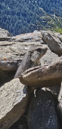 Super balade dans des chemins agréables entre les épicéas ,la faune et lorsque nous sommes à 20 minutes du refuge nous en avons pleins les yeux avec les marmottes qui sont à deux pas de vous et même qui traversent devant vous