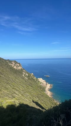 We raken betoverd door het prachtige landschap terwijl we de Middellandse Zee volgen en naar Capu di Muru en zijn vuurtoren klimmen.