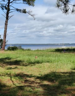Aan de oevers van het Hourtin-meer en in de schaduw van de hoge pijnbomen