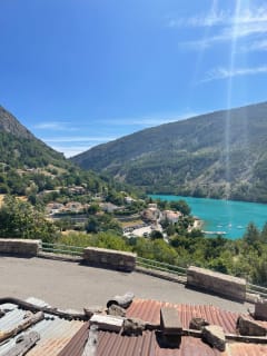 Super mais un peu dangereux : RN sans trottoir et bord du lac abrupt.