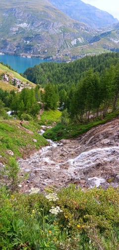 Tignes - Les Condus - Aiguille Percée - Afdaling naar het meer