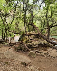 Een gemakkelijk toegankelijke wandeling voor het hele gezin. We komen aan aan de voet van de Sillans-waterval. Deze is echter niet erg zichtbaar gezien de omringende vegetatie.