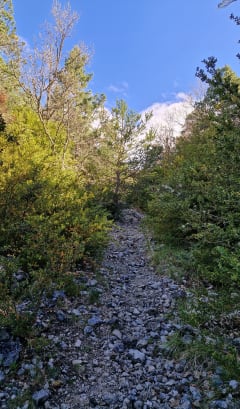Itineraire agréable et bien ombragé sauf sur les derniers km. les derniers km son que de la pierre. mon enregistrement s'arrête avant le bas plus de batterie.