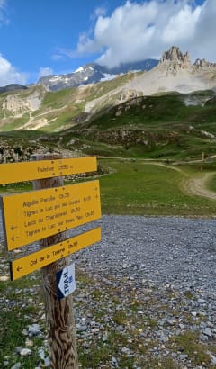 Vanuit Tignes-le-Lac neemt u de Palafour-stoeltjeslift omhoog richting de meren van Chardonnet. Uitzicht op de Aiguille Percée. U passeert de oever van het Grand Lac du Chardonnet en vervolgens de Petit Chardonnet. Panoramisch uitzicht over Tignes-le-Lac, vanaf het meer tot aan Tignes Val Claret. Daal af richting Tignes Val Claret langs de golfbaan en passeer vervolgens de ruiterpaden. U arriveert bij de rotonde van Val Claret.