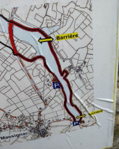 Begin bij de parkeerplaats onder Massignac en loop vervolgens rond het meer, door het dorpje Lisignac. Volg in Lisignac de blauwe markeringen en vervolg uw route langs het meer.