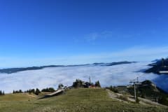 Vanaf juni bloeit de flora in de weilanden die u oversteekt om de bergkammen te bereiken, vanwaar u een adembenemend panorama heeft.