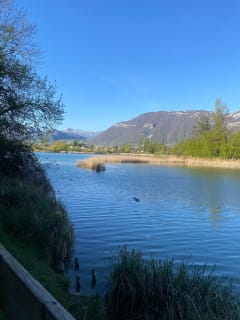 Belle boucle dans les vignes avec de belles vues sur les montagnes et le lac de St André.