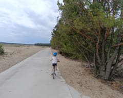 Bardzo przyjemna trasa, częściowo betonowa ścieżka, częściowo szutrowa. Nasz 5 latek przejechał 16km.