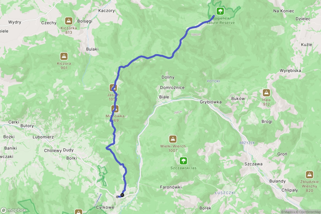 Ta trudna, ale niezwykle satysfakcjonująca trasa prowadzi niebieskim szlakiem 🌲 z malowniczej miejscowości Jurków 🏞️ bezpośrednio na sam szczyt Mogielicy ⛰️. Wędrówka jest wymagająca, ale również satysfakcjonująca 🌄.