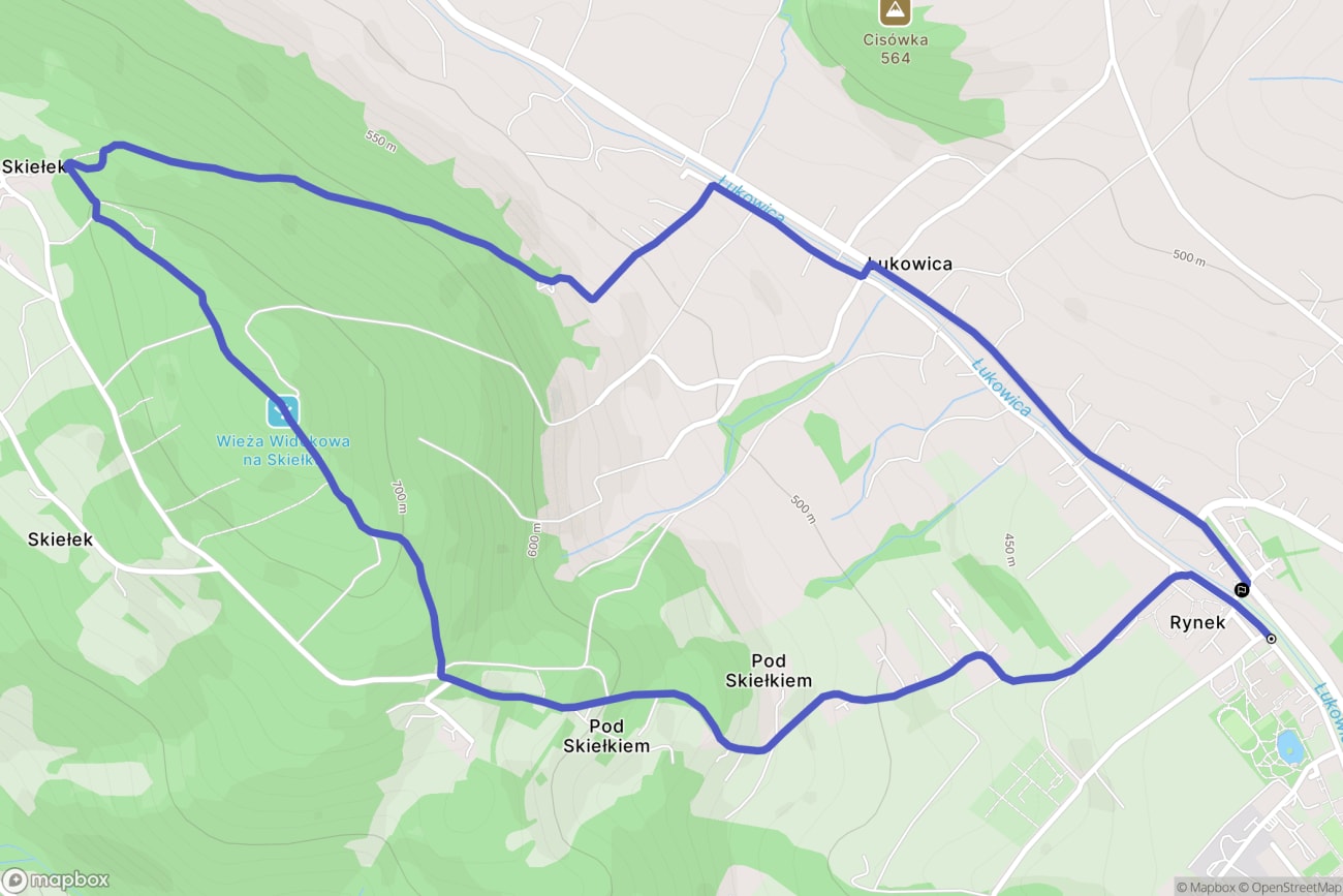 Wędrówkę najlepiej rozpocząć przy kościele ⛪ we wsi Łukowica, skąd prowadzi zielony szlak turystyczny 🟩. Początkowo droga biegnie asfaltowym odcinkiem 🚗 przez wieś, a później prowadzi przez las 🌳, gdzie zaczyna się bardziej strome podejście. Po około godzinie marszu ⏱️ dotrzesz na szczyt, gdzie oprócz wieży znajduje się polana 🌿 z miejscem do odpoczynku 🪑 oraz krzyżem ✝️ upamiętniającym wizytę papieża Jana Pawła II.