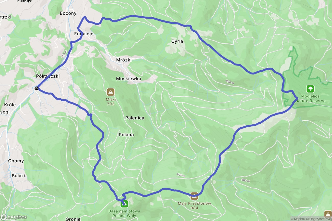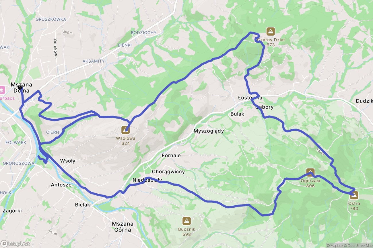 Trasa kończy się powrotem do punktu startowego 🔙 w Mszanie Dolnej 🏘️. Choć wymagająca, będzie świetnym wyborem 🎯 dla tych, którzy szukają dłuższej i ambitniejszej wyprawy w okolice malowniczego Beskidu Wyspowego 🌄.