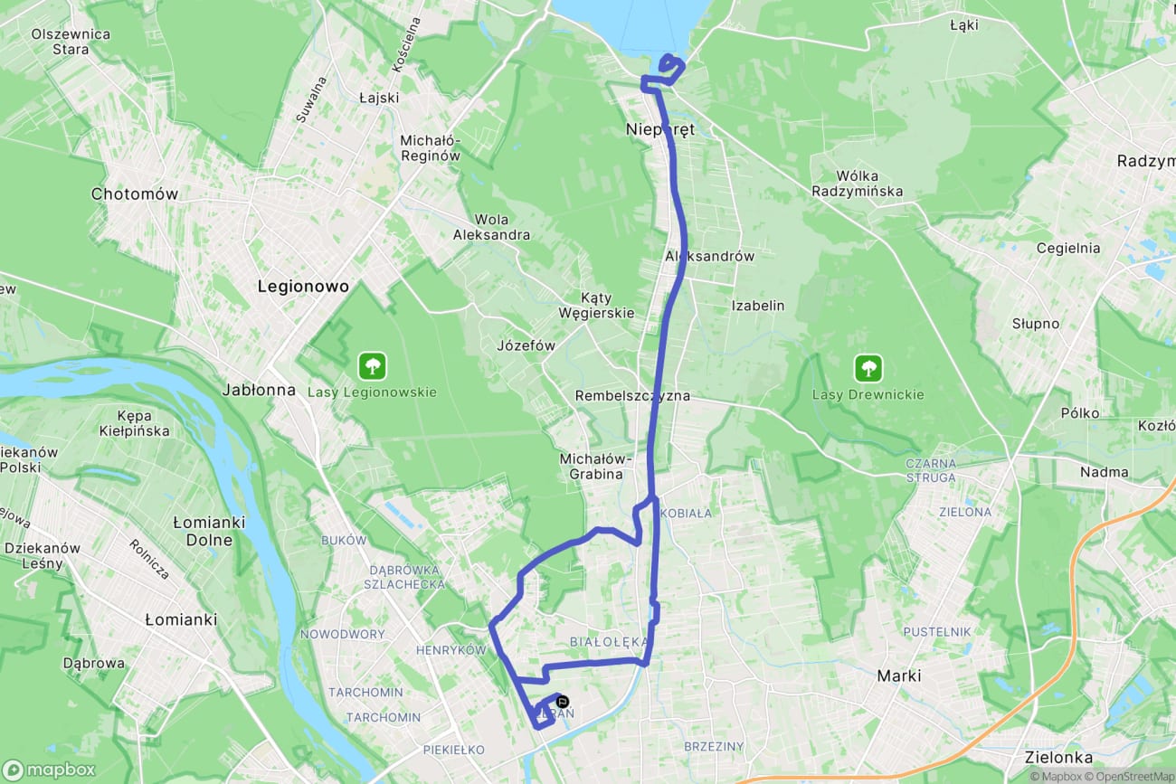 Droga powrotna wiedzie przede wszystkim przez tereny zielone, co daje wytchnienie od zgiełku miasta, a także nieliczne małe osiedla. Prowadzącą do Jeziora Zegrzyńskiego trasę możesz kontynuować do punktu wyjściowego. Alternatywą jest dojechanie do skrzyżowania z ulicą Zegrzyńską, skręt w lewo, a potem zatrzymanie się na nieodległej Dzikiej Plaży, gdzie z Molo w Nieporęcie możesz obserwować otoczenie Zalewu Zegrzyńskiego.