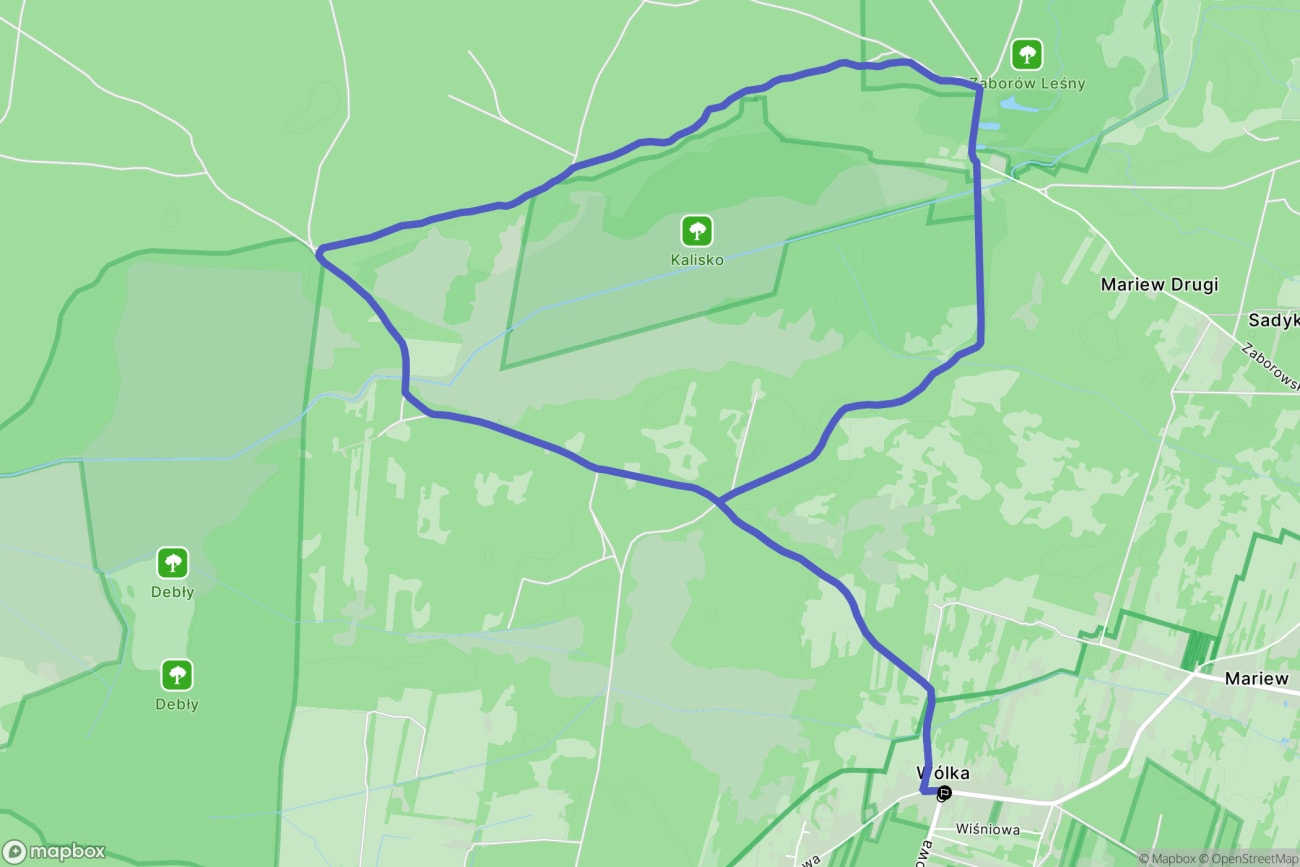 Przygodę zaczynamy z Wólki i od razu wchodzimy na wymagającą pętlę, prowadzącą przez mniej uczęszczane rejony Kampinoskiego Parku. Trasa wznosi się przez Piaskową Górę, Górkę, Ławską Górę i kończy na wzniesieniu Nad Kaliskiem. Piękne widoki, ale również wymagający teren.