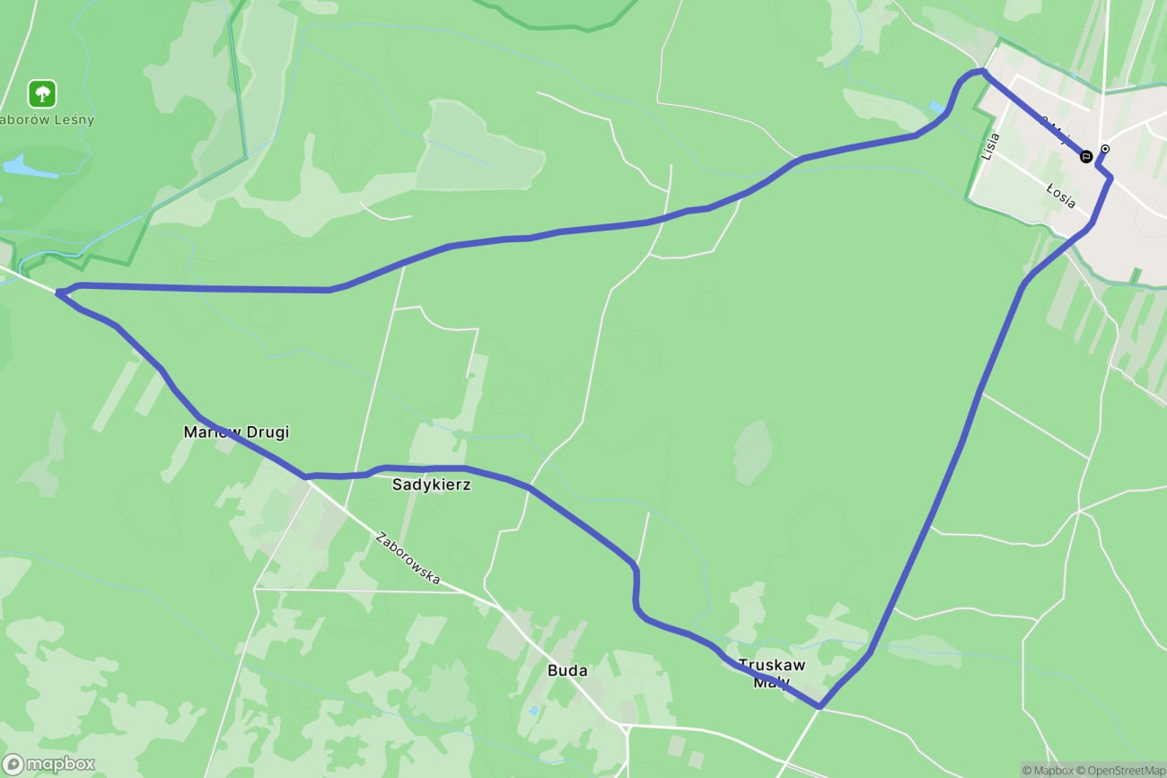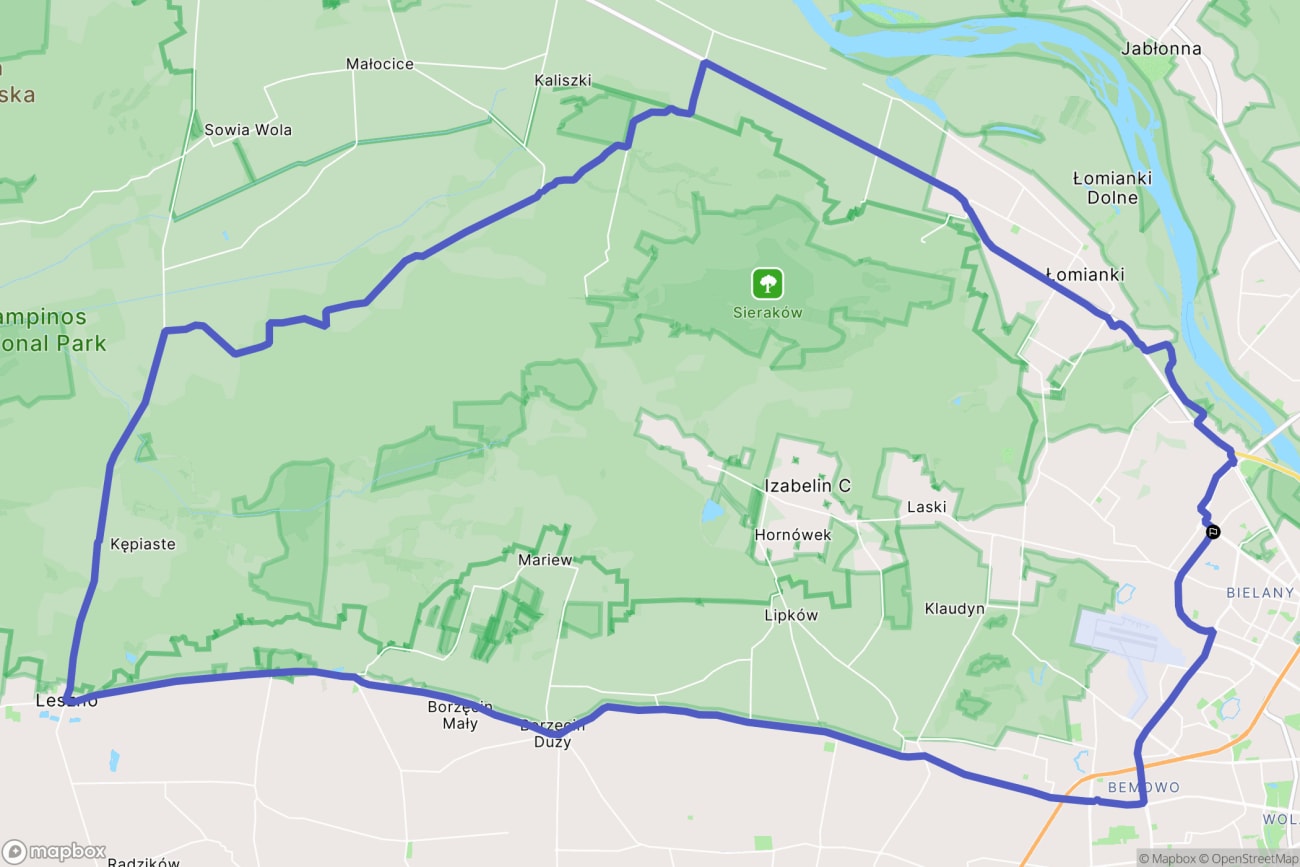 Lekkie 51 km to luźna nazwa na niezobowiązującą, choć dłuższą trasę w okolicy Kampinosu. To spokojna, asfaltowa pętla biegnie przez różne oblicza zachodniego Mazowsza. Startuje się z Józefowa, a potem już szybko zanurzasz się w sielskie klimaty Płochocina i Zaborowa, gdzie pola przeplatają się z kępami dawnego lasu.
