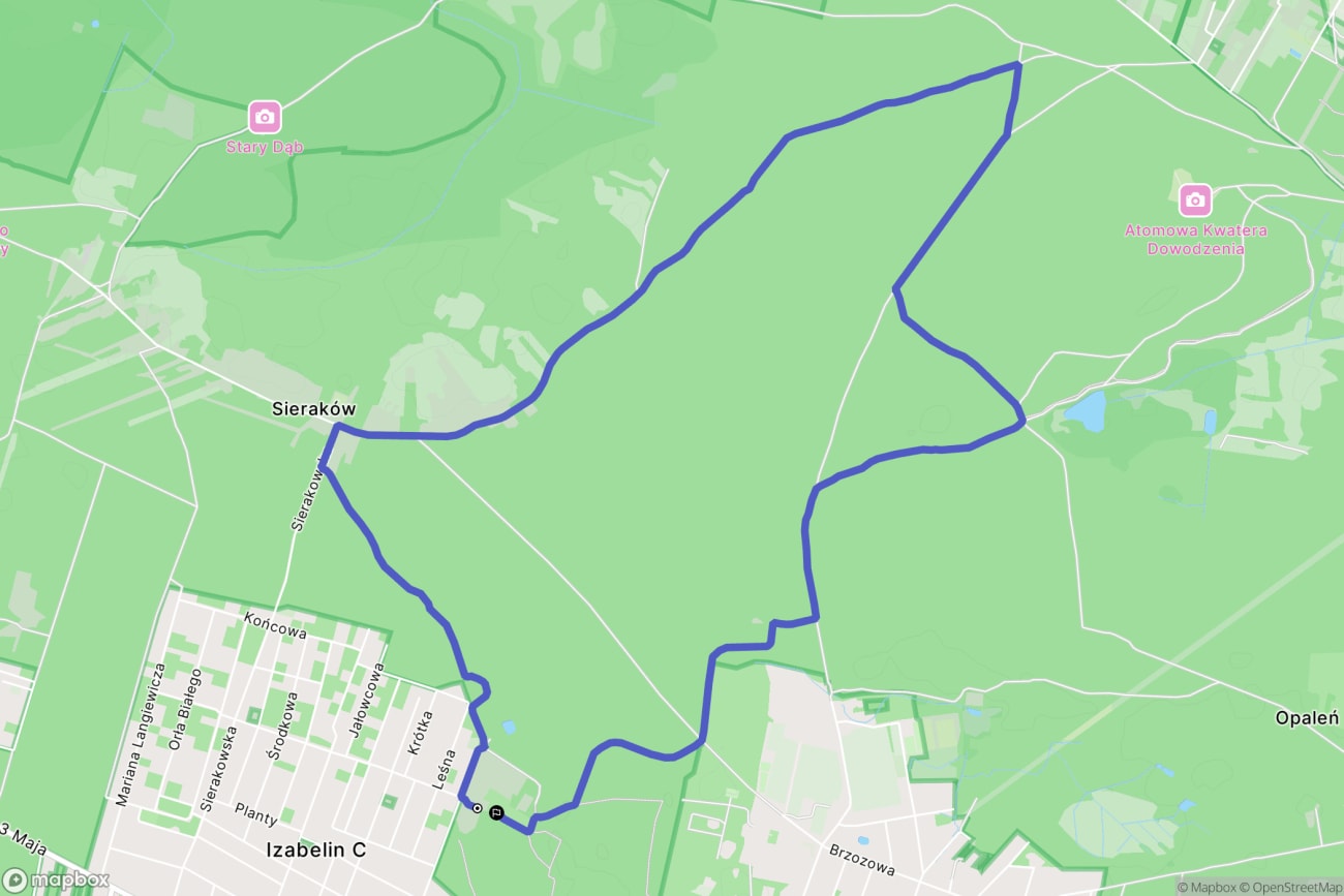 Szukasz umiarkowanej wędrówki dla średnio zaawansowanych? Szlak rozpoczyna się w Sierakowie i prowadzi przez spokojne, leśne tereny Kampinosu z niewielkimi wzniesieniami. Po drodze miłośnicy trekkingu mogą napotkać Stary Dąb oraz kilka pagórków – m.in. Spółkową i Sierakowską Górę. Trasa ma formę pętli i kończy się w tym samym miejscu, co start, co czyni ją wygodną także dla początkujących fanów pieszych wycieczek.