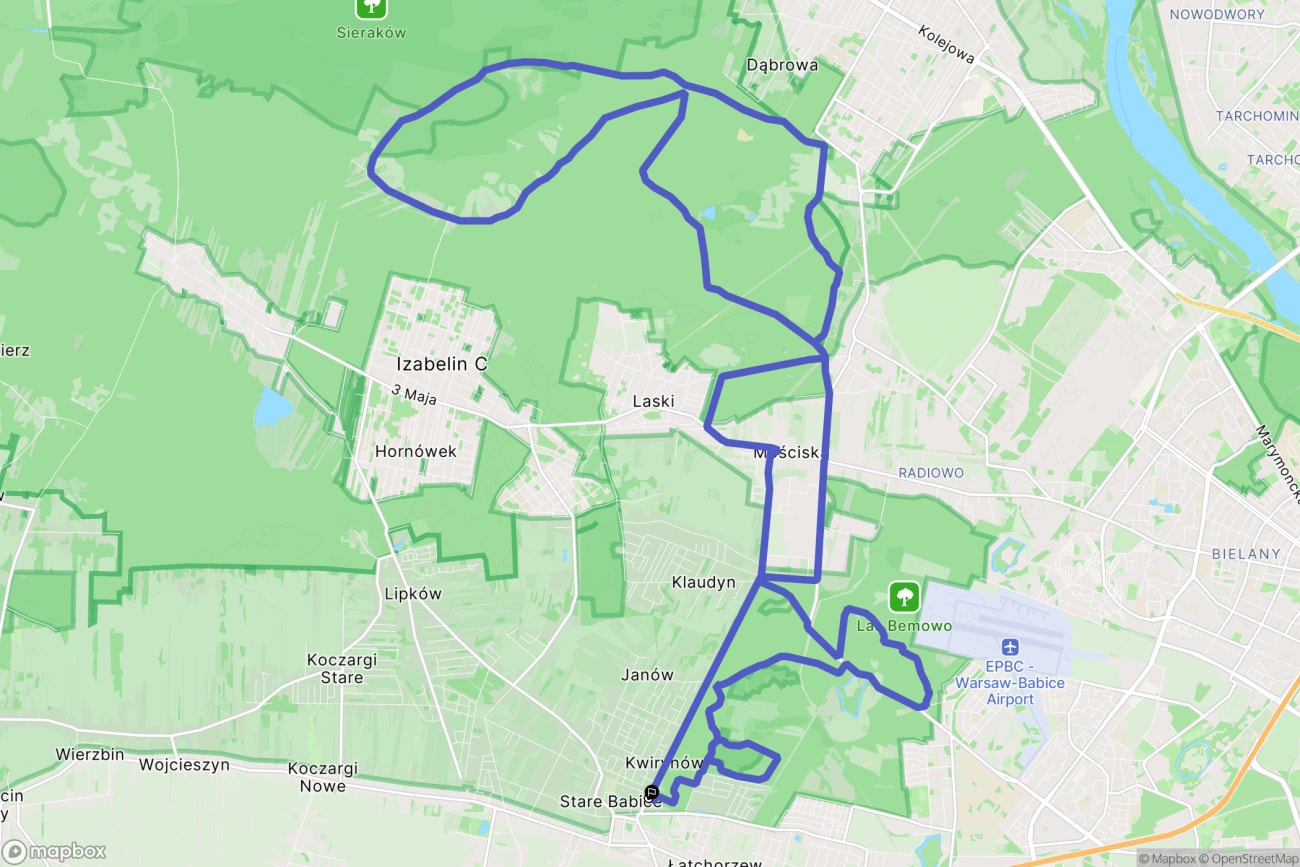 Trasa prowadzi przez ciche leśne drogi, gdzie spotkasz więcej saren niż ludzi, co pozwala odetchnąć i się zrelaksować. Las Bemowski potrafi zaskoczyć dziką przyrodą, a okolice Łosiowych Bagien dają uczucie bycia daleko od miasta. Najlepsze, że jesteś wciąż w zasięgu Warszawy! Świetna na rower z oponami 35+, bez konieczności górskiego przygotowania. Dla fanów flow i natury. Przed wyjściem w plener, warto sprawdzić aktualne dane. Wpisz w Internecie hasło: Kampinoski Park Narodowy Informacje, aby sprawdzić aktualności szczególnie dotyczące zamkniętych odcinków lub zaleceń dla odwiedzających.