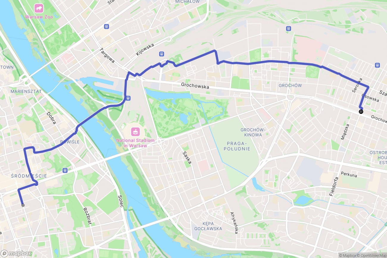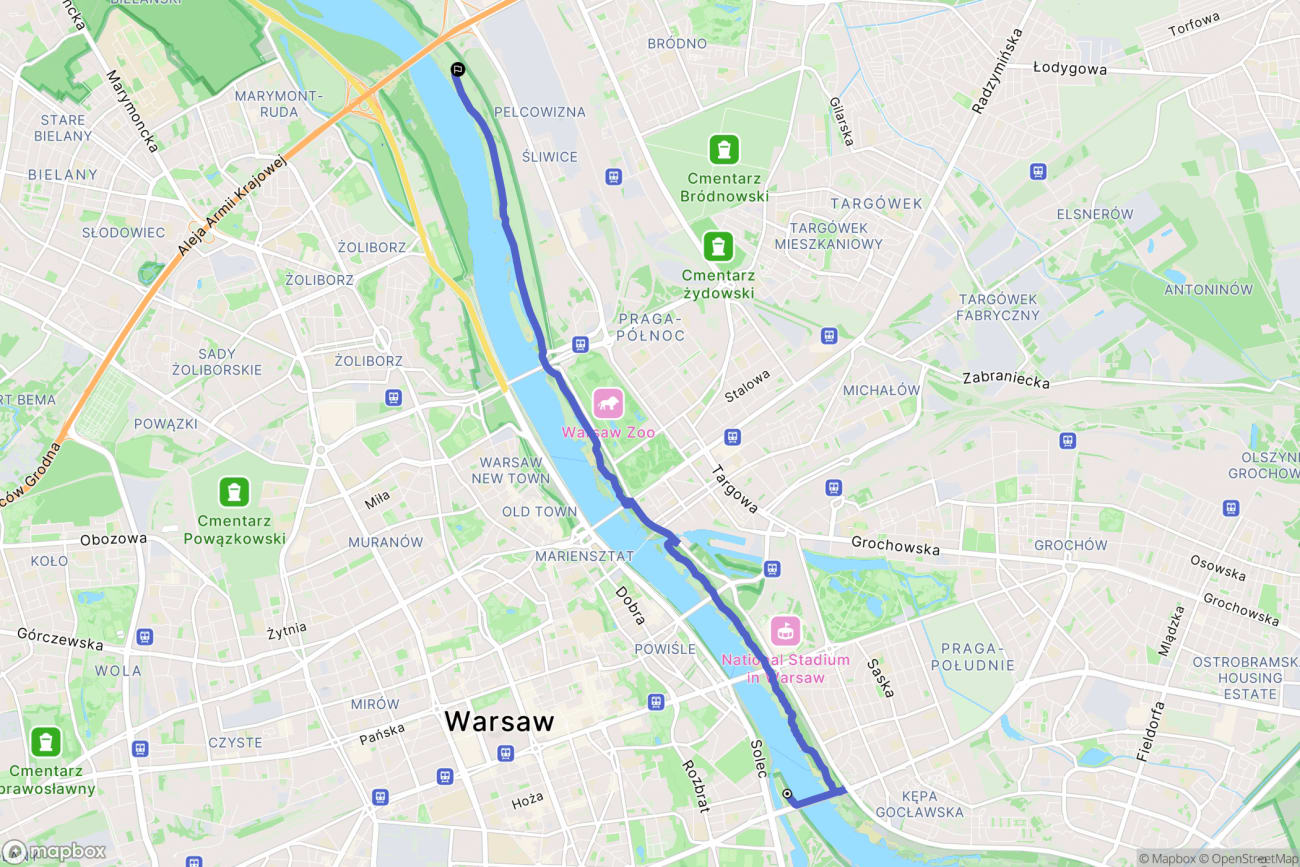 Tym razem eksplorujemy prawy brzeg Wisły – od Mostu Gdańskiego aż do Saskiej Kępy. Trasa biegnie przez ZOO, Park Praski, ulicę Ząbkowską, a dalej spokojniejsze tereny Gocławia. W sam raz dla tych, którzy chcą poznać mniej znane zakamarki Warszawy.