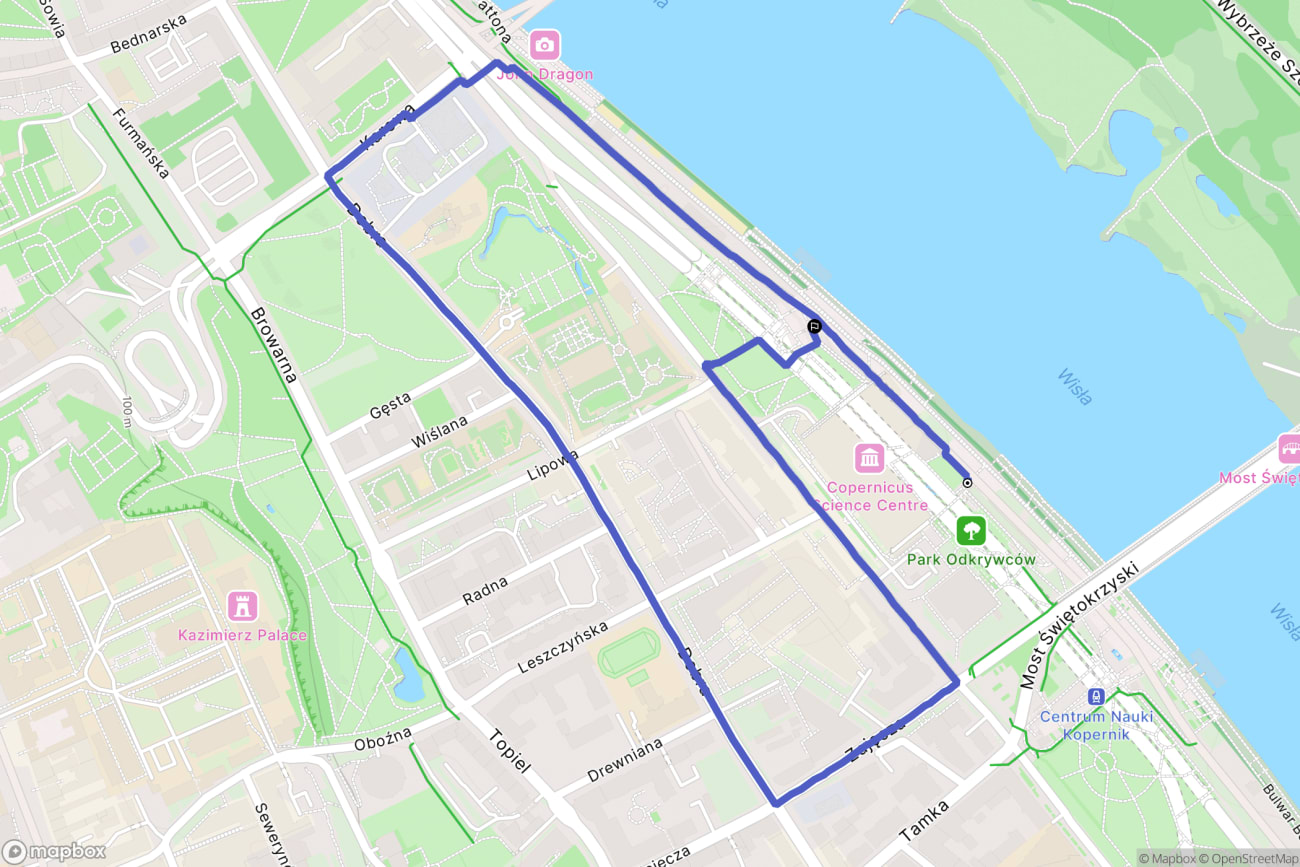 Ścieżka, choć teoretycznie przeznaczona jest tylko dla pieszych, w praktyce jest na tyle szeroka, że bez problemu można nią spacerować z wózkiem dziecięcym. W połowie trasy zbliżamy się do brzegu Wisły, gdzie możecie zatrzymać się na chwilę, aby podziwiać rzekę i piękną okolicę. Powrót prowadzi obok imponującego kompleksu Centrum Olimpijskiego. Ta spacerowa propozycja to świetna opcja dla tych, którzy szukają spokojnego spaceru w zielonych okolicznościach, z dala od miejskiego zgiełku, a jednocześnie blisko centrum. Ścieżka jest szczególnie przyjemna w upalne dni dzięki gęstym koronom drzew.