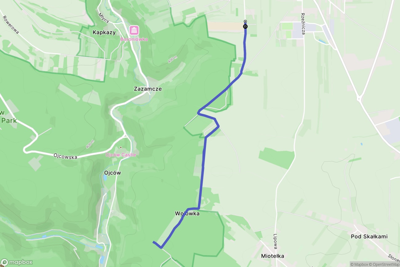 Ten odcinek prowadzi łagodnym podejściem, w otoczeniu wysokich drzew i wapiennych zboczy. Gdy dotrzesz do rozdroża przy Zamkowej Drodze, możesz zdecydować, czy kontynuować marsz w kierunku Pieskowej Skały, czy zrobić krótką przerwę i wrócić tą samą trasą.